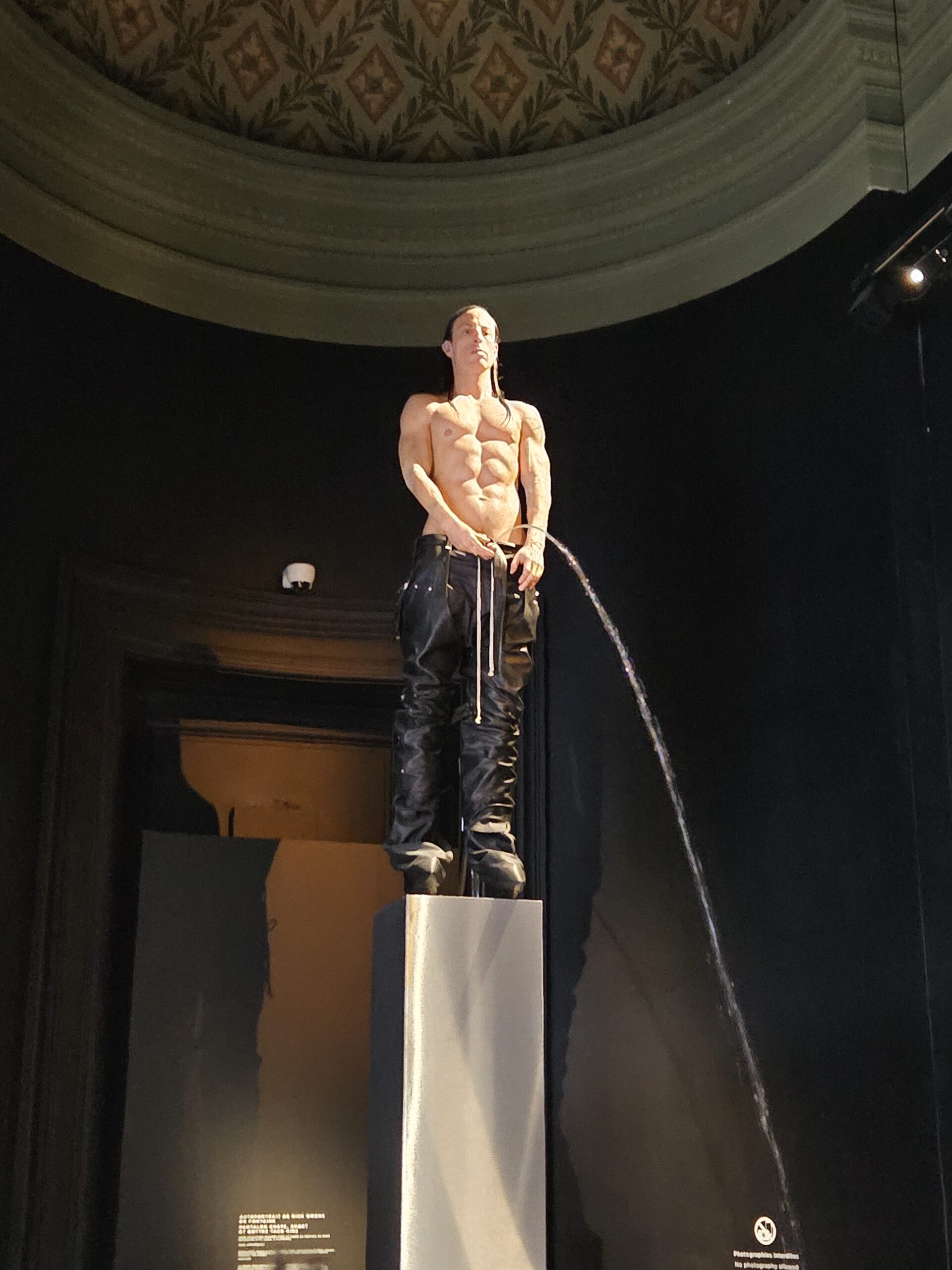 Досегът до всяка изложба, в това число и до такава мащабна експозиция, като „Храм на любовта“ с произведения на Рик Оуенс, оставя както фрагментарни, така и цялостни впечатления. Детайлите, които без усилие се запечатаха в паметта ми са свързани с любопитното приемане и оттласкване на дизайнера от произведенията на легендарната мадам Гре; естествената грубост и грубоватата естественост на селектираните и изложени негови произведения; примерите за колаборация със световни брандове от рода на Eastpak, Adidas, Dr. Martens, Converse, Rimowa; синхрона и контраста на интериора и екстериора на изложбата; не на последно място – неговата разголена скулптура, възвисяваща се и уринираща в специално корито в залата с предупредителен надпис за непристойни сцени – статуя, за която сравненията с Манекен Пис или фонтана „Пикаещото момченце“ в Брюксел биха били пресилени и недотам основателни. Но това са фрагментите. Кое е цялостното впечатление от тази изложба в „Галиера“?