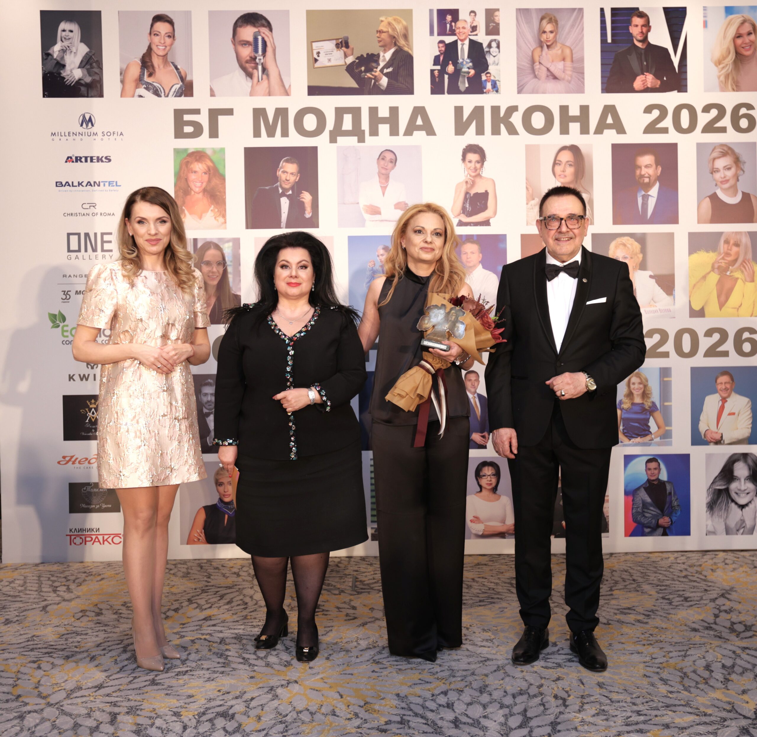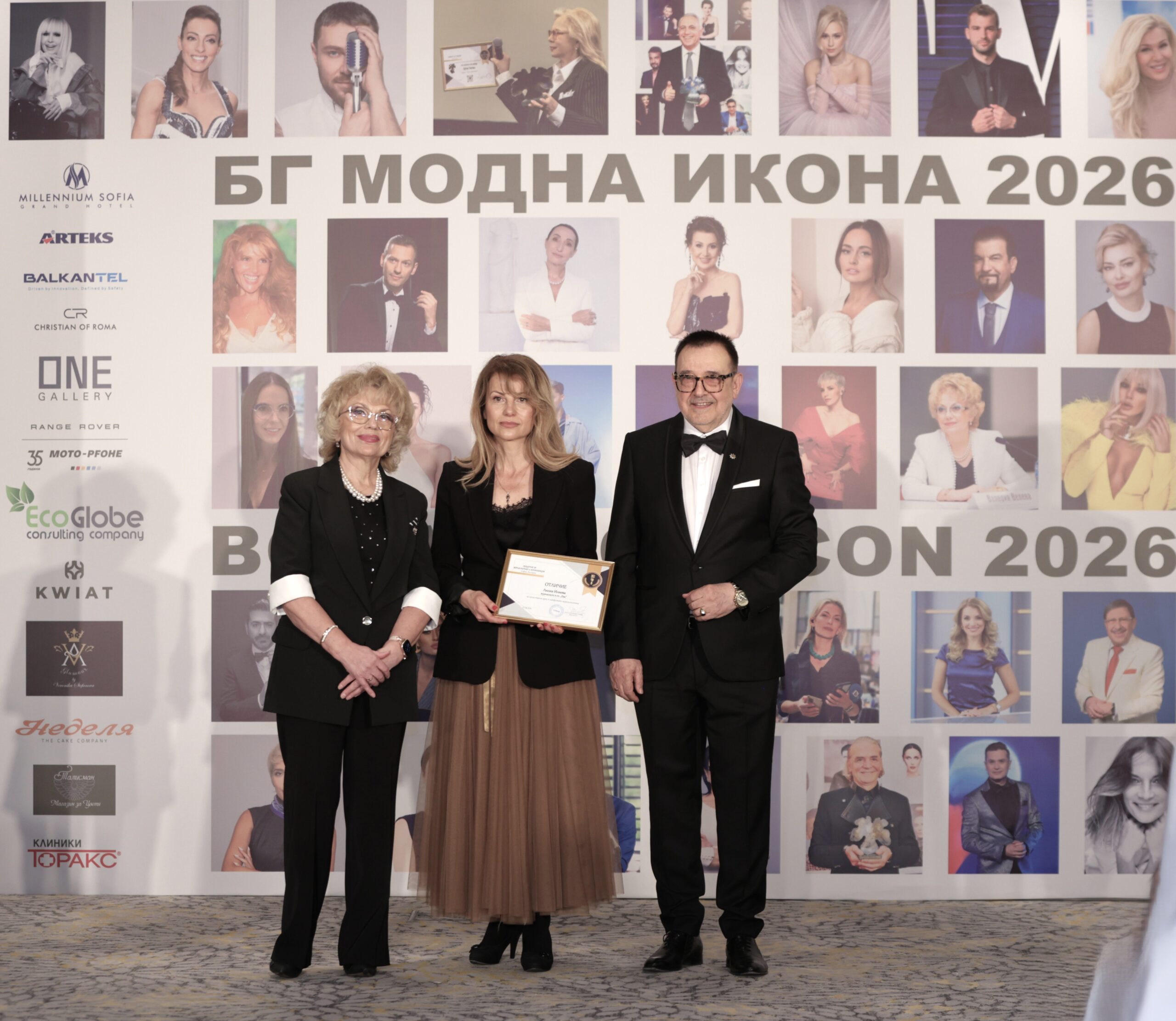 На изискана церемония в „Гранд хотел Милениум София“ бяха връчени Годишните награди на Академията за мода за успех и стил „БГ модна икона 2026”. С красивите статуетки бяха удостоени Антоанета Добрева – Нети в категория „Кино и театър“, Михаела Маринова в категория „Музика“, Орлин Павлов в категория „Изкуство“, Кубрат Пулев в категория „Спорт“, водещата на bTV Новините Лиляна Боянова в категория „Медии и журналистика“ и водещата на централната емисия „По света и у нас“ по БНТ Аделина Радева категория „Медии и журналистика“. Според традицията на Академията за мода, критериите известни български личности да получат статут на БГ модна икона, са качества и добродетели като високи професионални постижения, безупречна култура, морал и репутация, изискан и модерен вкус и стил, социална и хуманна ангажираност.
