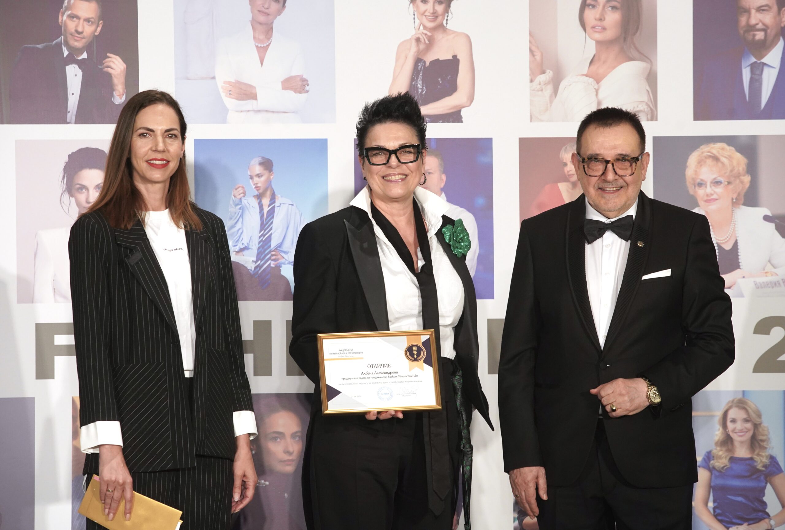 Лиляна Боянова – носител на приза „БГ модна икона 2026“ в категория „Медии и журналистика“ и проф. Любомир Стойков.