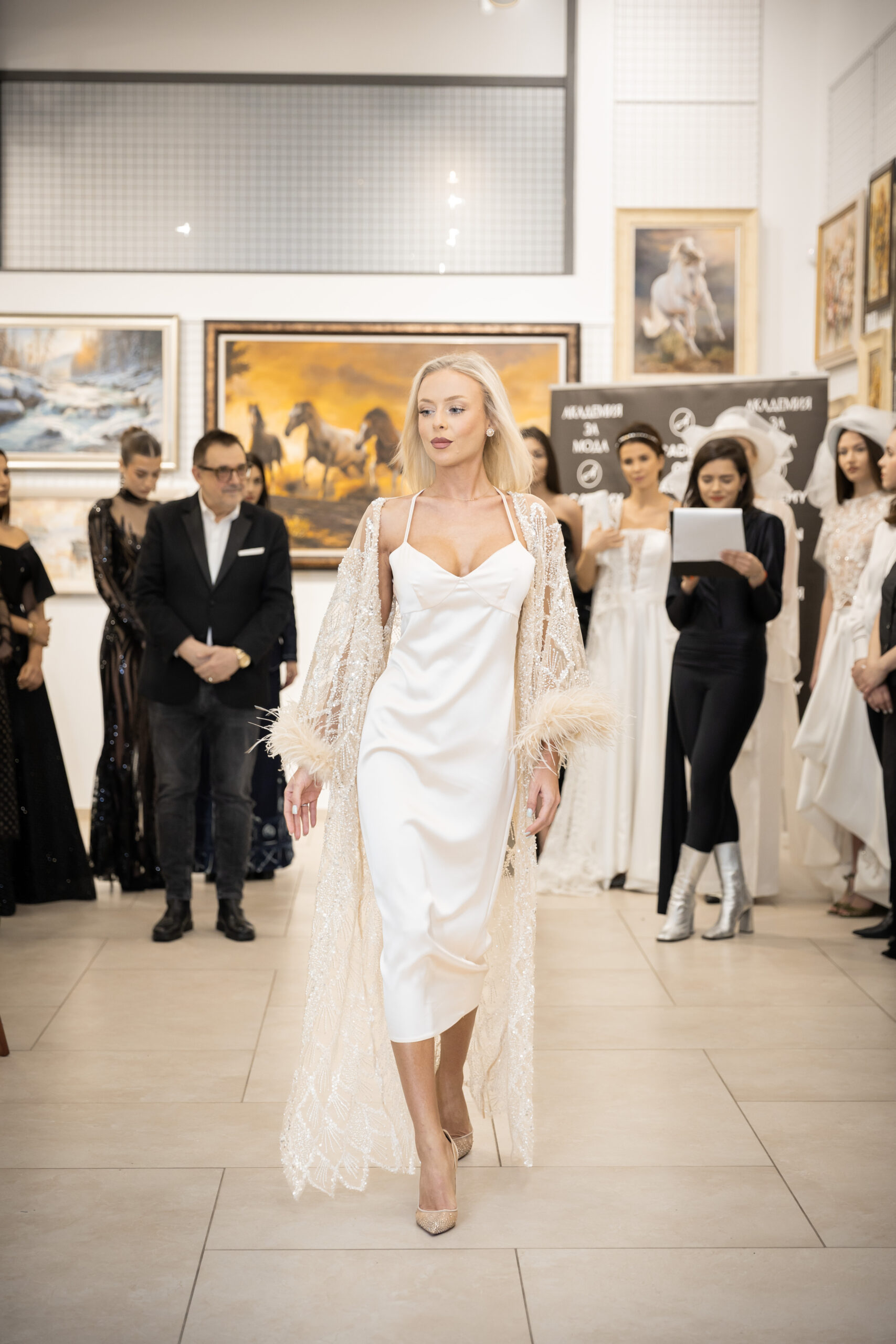 Модното ревю започна с Ивет Бианки – носител на „Изгряваща звезда 2025“ в категория „Международни успехи“ и носител на „Златна игла 2024“ в категория „Най-добър млад дизайнер“. Тя презентира тоалет, част от колекцията „Романс, написан в черно и бяло“. Вдъхновението идва от философията на Кристиан Диор и неговия New Look – визия, която възвръща романтиката, мекотата и достойнството на женската форма.