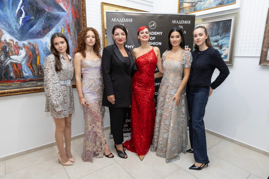 Борислава Борисова и Николета Георгиева в неин тоалет, Поля Кинова и Кристияна Йорданова в неин тоалет, Ивет Бианки и Александра Кръстева в неин тоалет. Фото: Академия за мода / Петър Станев
