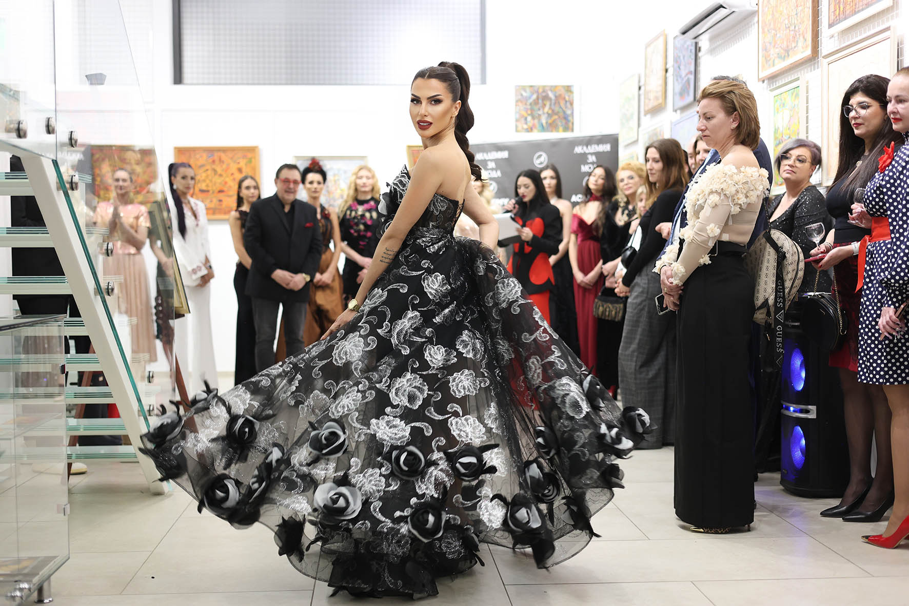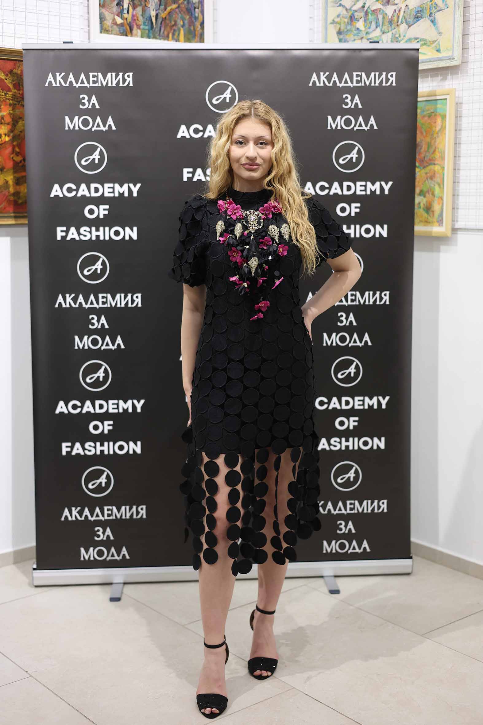 Анелия Петкова – собственик на бутик Bridal Fashion, представи тоалет от черен тюл с ръчно шити акценти – миниатюрни волани в актуалната дължина tea lenght в А линия и корсетна част със сърцевидно деколте с фин набор. Голяма панделка от същата материя на гърба и ефектно бижу от японски перли, също във форма на панделка, съчетана с обеци и гривна от SSG, са инспирирани от ДНК-то на марката „Валентино“.