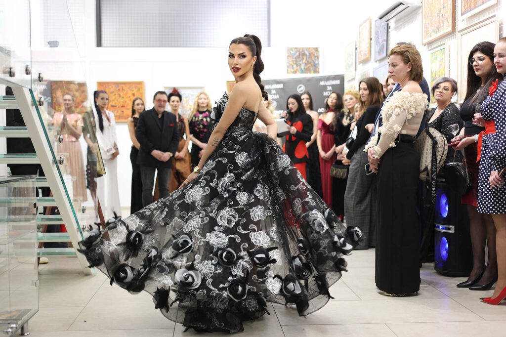 Модният бранд Tailor Atelier by Rumyana Ivanova с дизайнер Румяна Иванова представи черна рокля тип „принцеса“, създадена като символ на завладяващата романтичност. Вдъхновена от вечната романтична елегантност, тази визия отдава почит на класическата висша мода, но е интерпретирана през съвременния поглед на българския дизайнер.