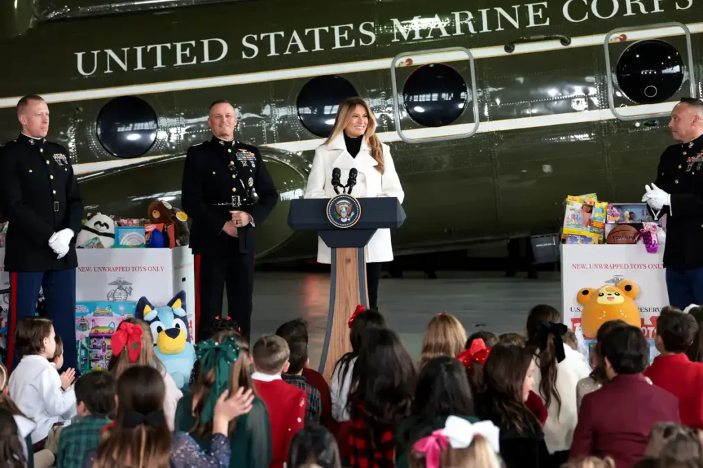 Мелания Тръмп заведе специален гост в базата на морските пехотинци в Куантико, Вирджиния, където се включи в тяхната благородна мисия „Играчки за малчугани“. Първата дама на САЩ пристигна под ръка с Дядо Коледа, като двамата слязоха от хеликоптер и бързо бяха посрещнати от присъстващите близо 250 военни семейства.