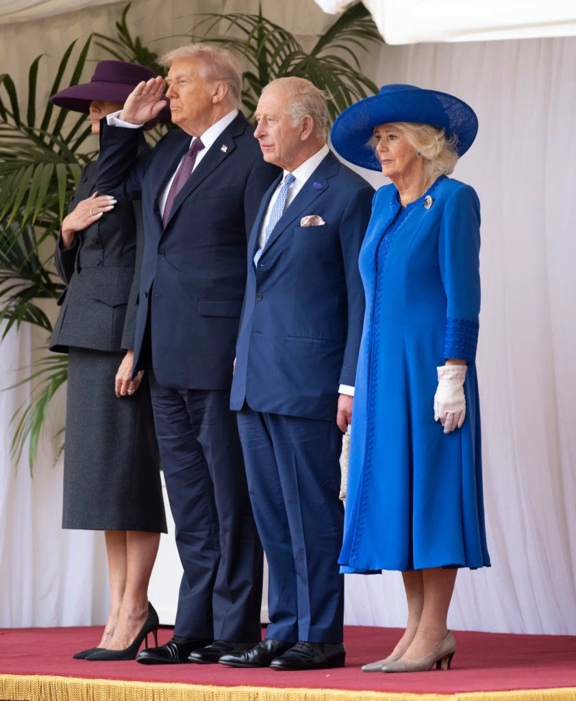 Принц Уилям и принцеса Катрин посрещнаха Доналд Тръмп и съпругата му Мелания в замъка Уиндзор за второто държавно посещение на американския президент във Великобритания. След приветствията, семейство Тръмп бяха отведени при кралската двойка крал Чарлз III и кралица Камила за официална церемония и обяд.