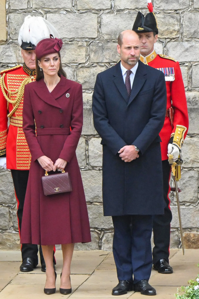 Принцът и принцесата на Уелс се появиха в координирани облекла в бургундско червено и тъмно синьо, като според анализаторите това е съзнателен моден избор – референция към цветовете на националния флаг на САЩ. Кейт беше облечена в тоалет на Емилия Уикстед и шапка на Джейн Тейлър, изработена от луксозен филц със сатенена панделка и воал, чиято стойност е 2330 британски паунда.
